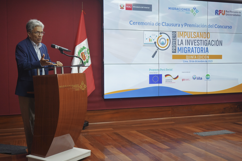 En el marco del Día Internacional del Migrante, la Superintendencia Nacional de Migraciones, en alianza estratégica con la Red Peruana de Universidades (RPU) y con el apoyo de la Agencia de Cooperación Alemana GIZ, celebró la clausura y premiación de la V edición del concurso «Impulsando la Investigación Migratoria». Este certamen tiene como objetivo fomentar la generación de conocimiento académico y propuestas basadas en evidencia sobre la realidad migratoria en el Perú. En consonancia con los retos actuales de la movilidad humana, las investigaciones giraron en torno a dos ejes fundamentales: “Seguridad y derechos humanos” y “Gobernanza territorial y gobiernos locales”.