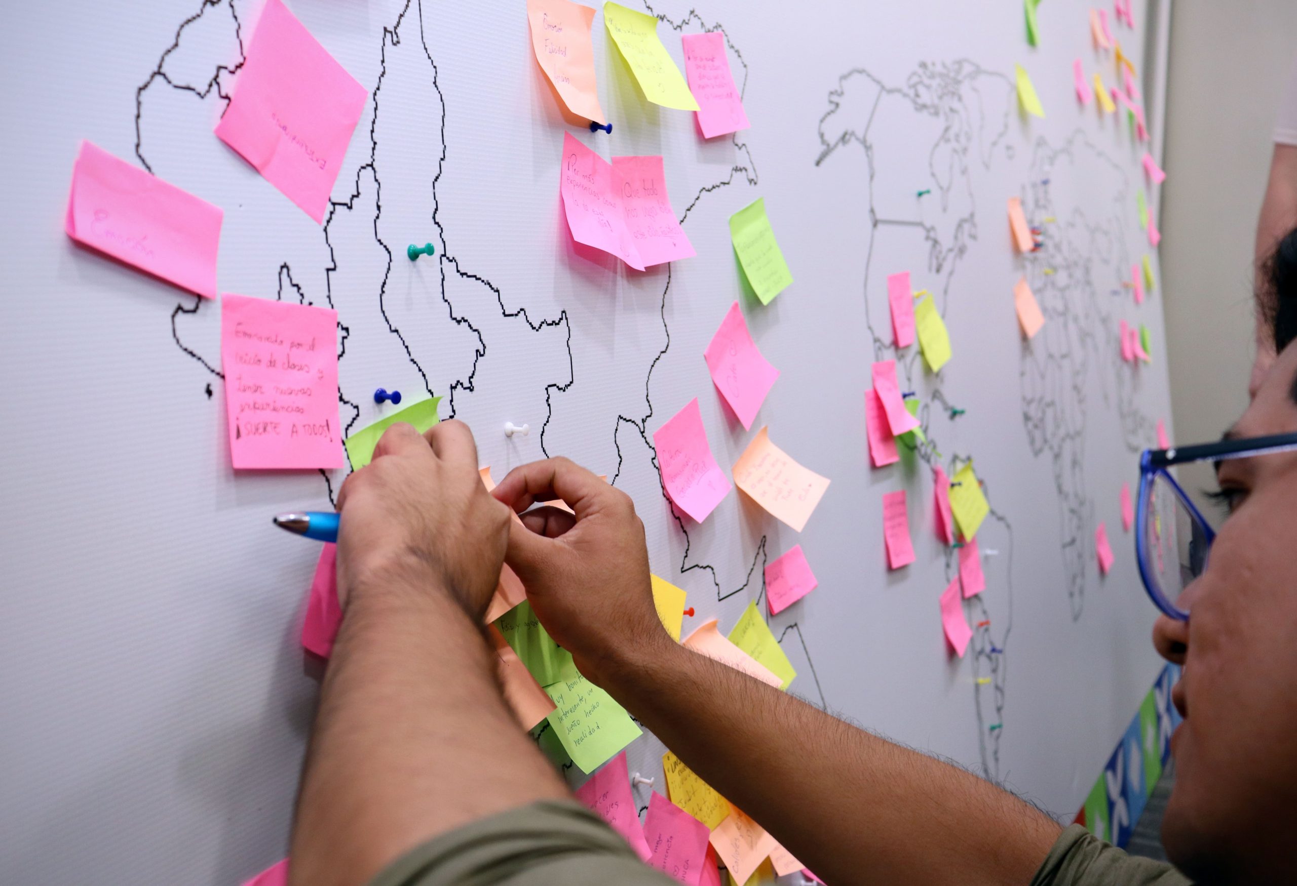 Uno de los momentos más significativos de la jornada fue la actividad en la que los participantes plasmaron en un mapa del Perú y del mundo sus expectativas y emociones frente a esta nueva etapa. Este ejercicio permitió visibilizar la diversidad de procedencias y trayectorias, así como reforzar el valor del intercambio como una experiencia de crecimiento personal y académico.