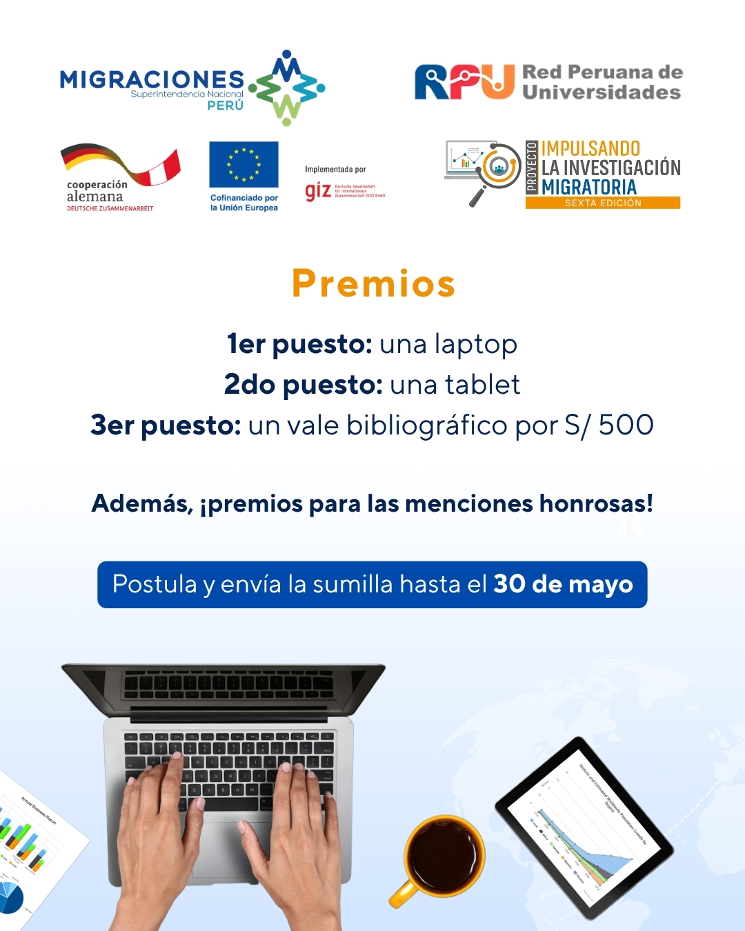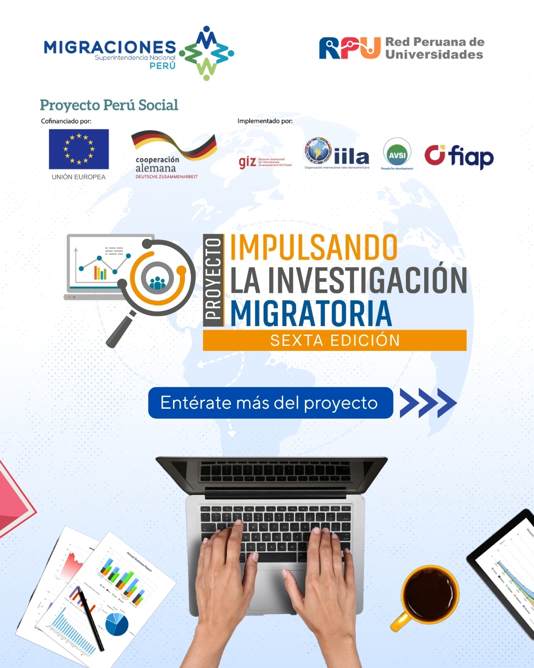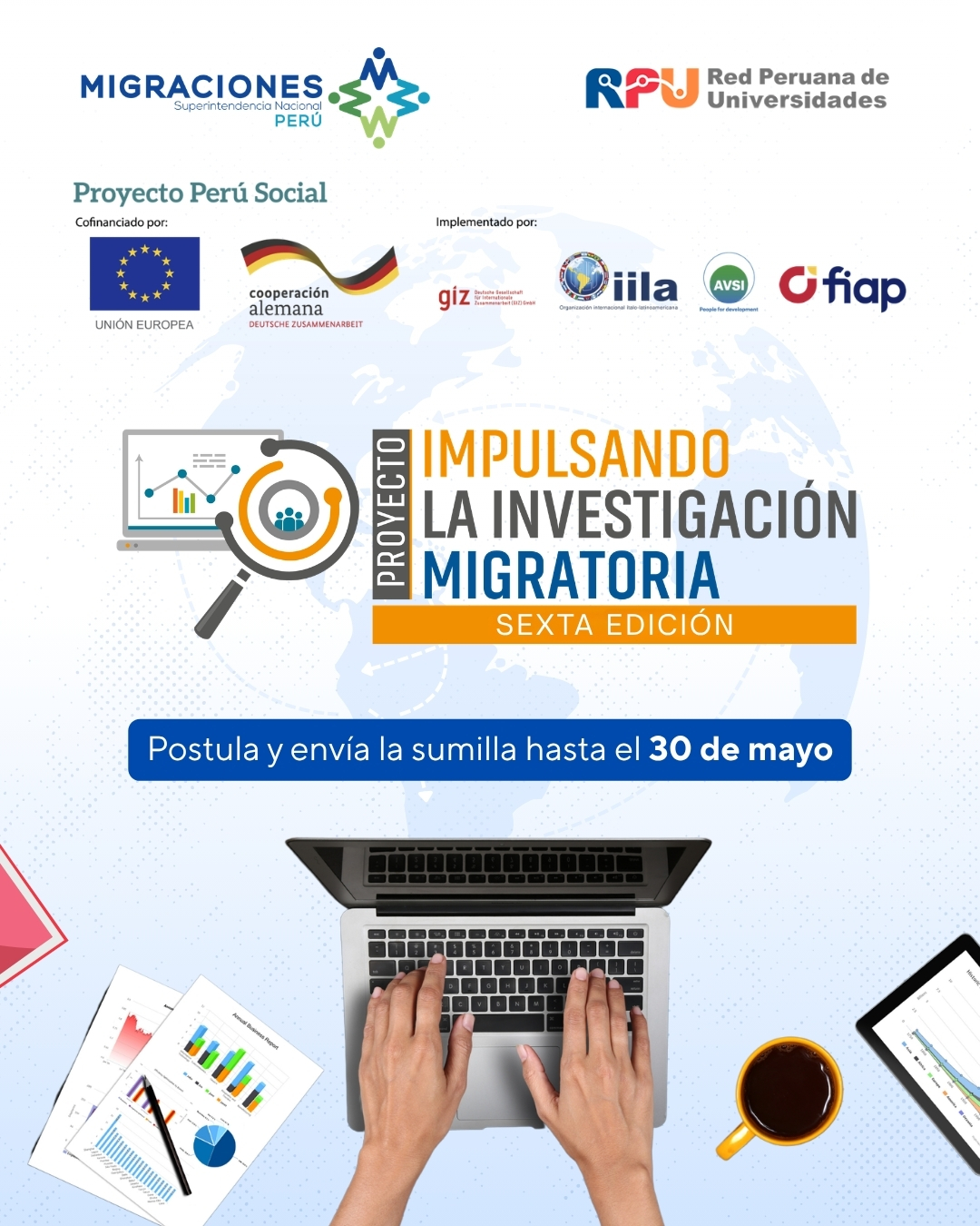 La Red Peruana de Universidades (RPU), en un esfuerzo conjunto con la Superintendencia Nacional de Migraciones y la Cooperación Alemana GIZ (con el cofinanciamiento de la Unión Europea), invita a la comunidad estudiantil a participar en la VI Edición de «Impulsando la Investigación Migratoria».