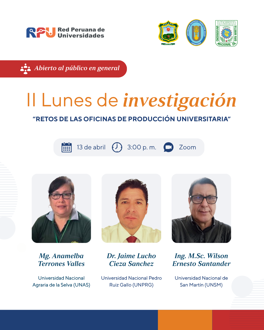 Te invitamos al Conversatorio sobre los "Retos de las oficinas de producción universitaria" junto a destacados especialistas: Mg. Anamelba Terrones Valles – Universidad Nacional Agraria de la…