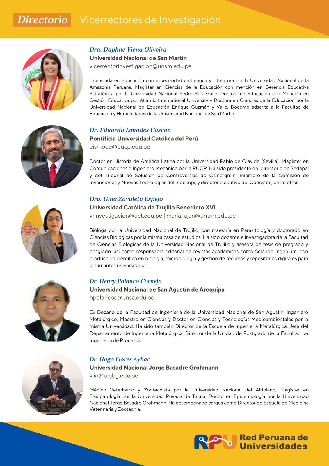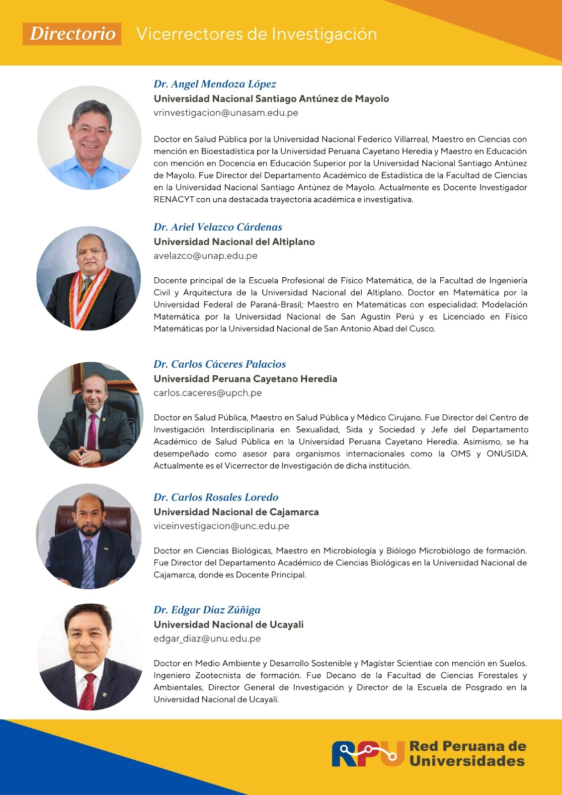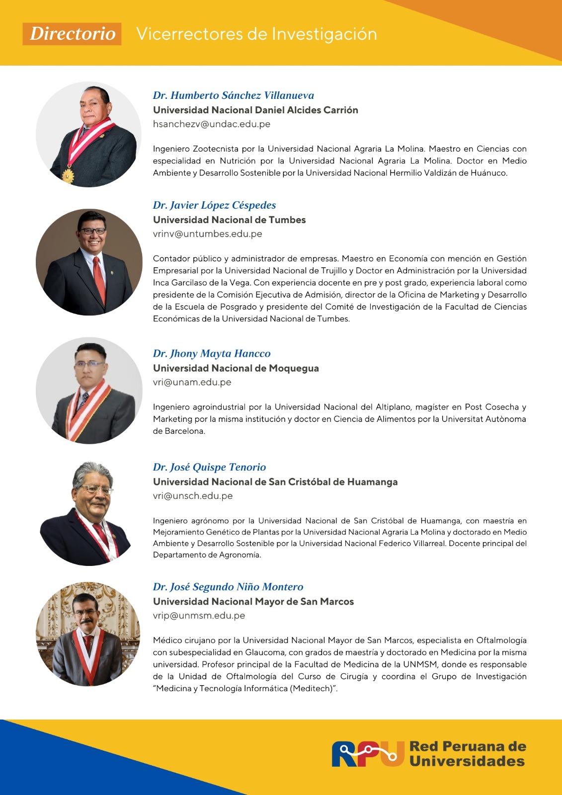 Conoce a los 30 vicerrectores de investigación que forman parte de la RPU